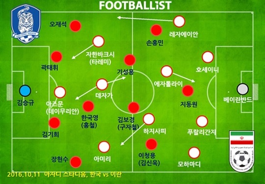 한국과 31일 서울월드컵경기장에서 2018 러시아월드컵 아시아 최종예선 9차전에서 맞붙는 이란 축구대표팀이 24명 명단을 확정, 발표했다.